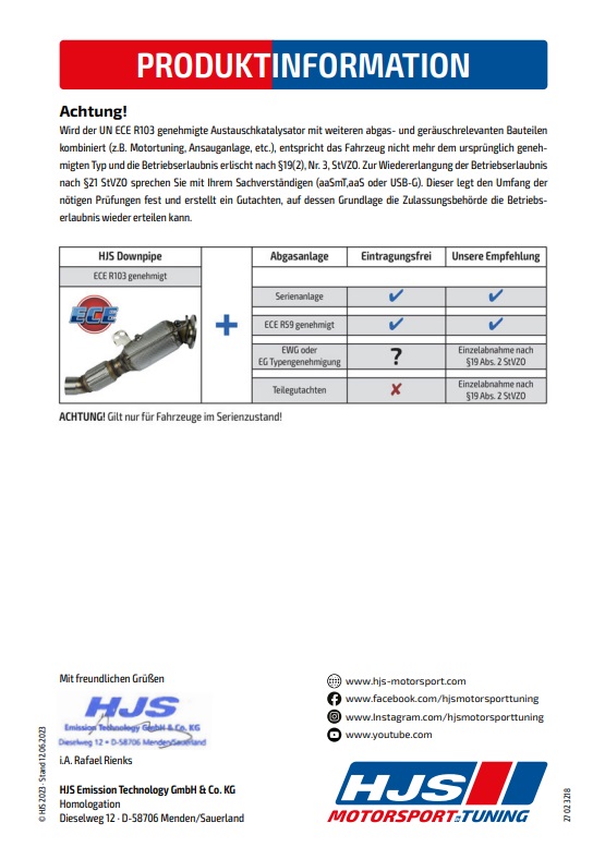 Hinweis: Dieses Produkt verfügt über eine ECE-Genehmigung und ist damit eintragungsfrei. Es kann im öffentlichen Straßenverkehr verwendet werden, ohne dass eine zusätzliche Abnahme oder Eintragung erforderlich ist. Bitte beachten Sie dennoch alle geltenden gesetzlichen Vorschriften sowie die ordnungsgemäße Montage und Verwendung.